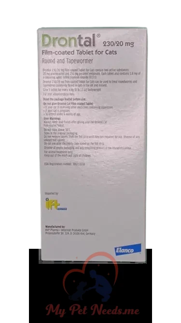 DRONTAL® for Cats by Bayer is a trusted broad-spectrum dewormer designed to eliminate the most common intestinal worms in cats. It provides effective protection against roundworms, hookworms, and tapeworms, helping to maintain your cat’s digestive health and overall well-being.