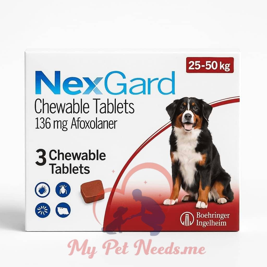 Order NexGard 136 mg for your 25–50 kg dog today from MyPetNeeds.me, and enjoy fast delivery across Egypt plus cash-on-delivery convenience.