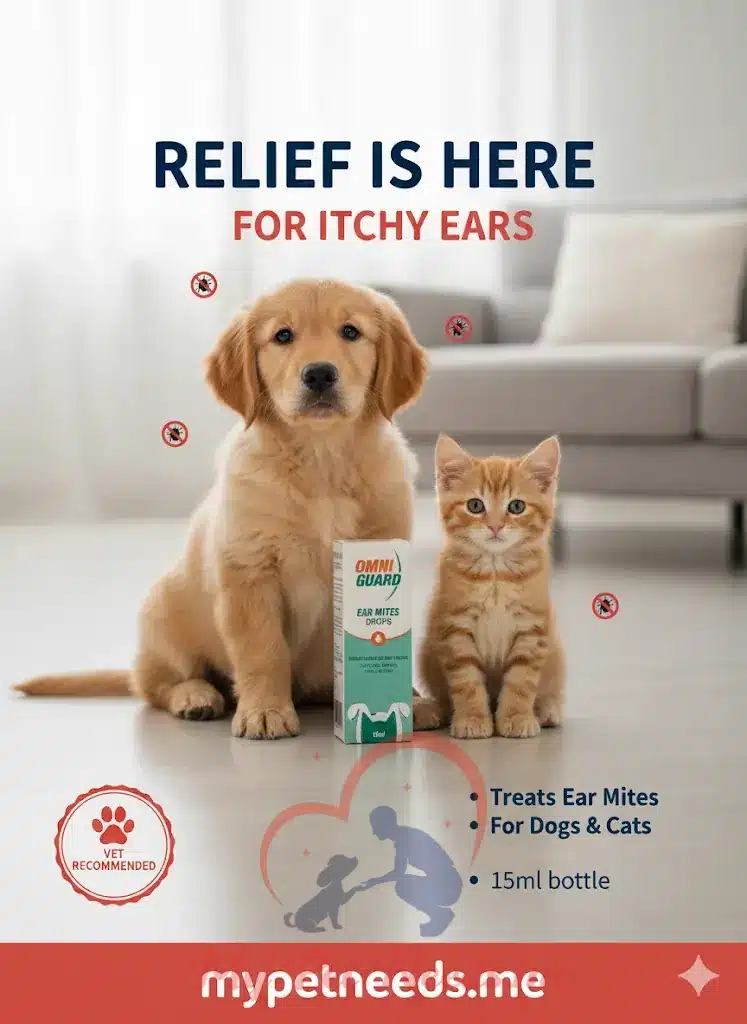 Ear mites can cause severe itching, redness, constant head shaking, and discomfort, which may lead to secondary infections if untreated. This veterinary-grade formula works by killing ear mites on contact while also soothing irritation and reducing inflammation inside the ear canal.