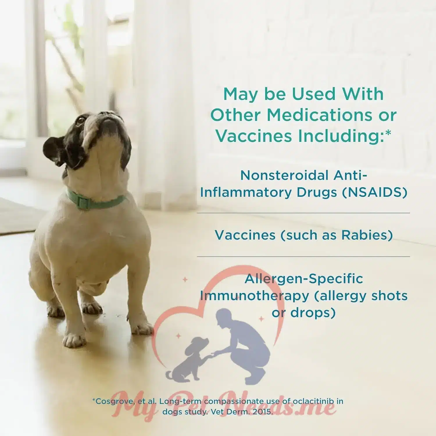 - Control of pruritus associated with allergic dermatitis in dogs.