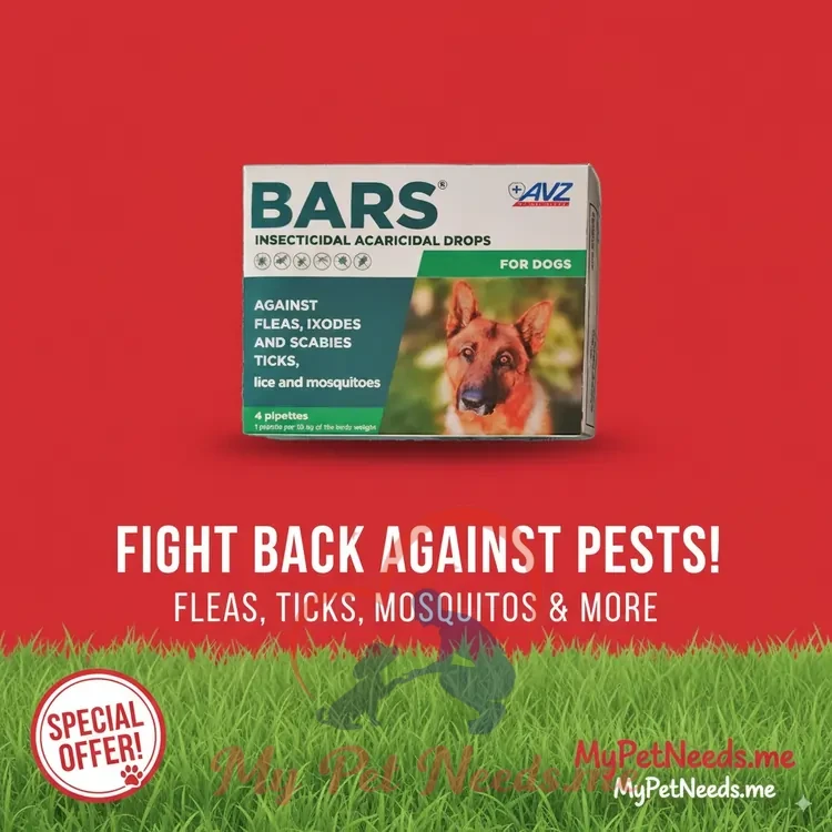 Overview: Bars for Dogs by AVZ is an insecticidal-acaricidal spot-on designed to eliminate and prevent fleas, ticks, lice, and mange-causing mites, providing fast-acting, long-lasting protection for dogs.
