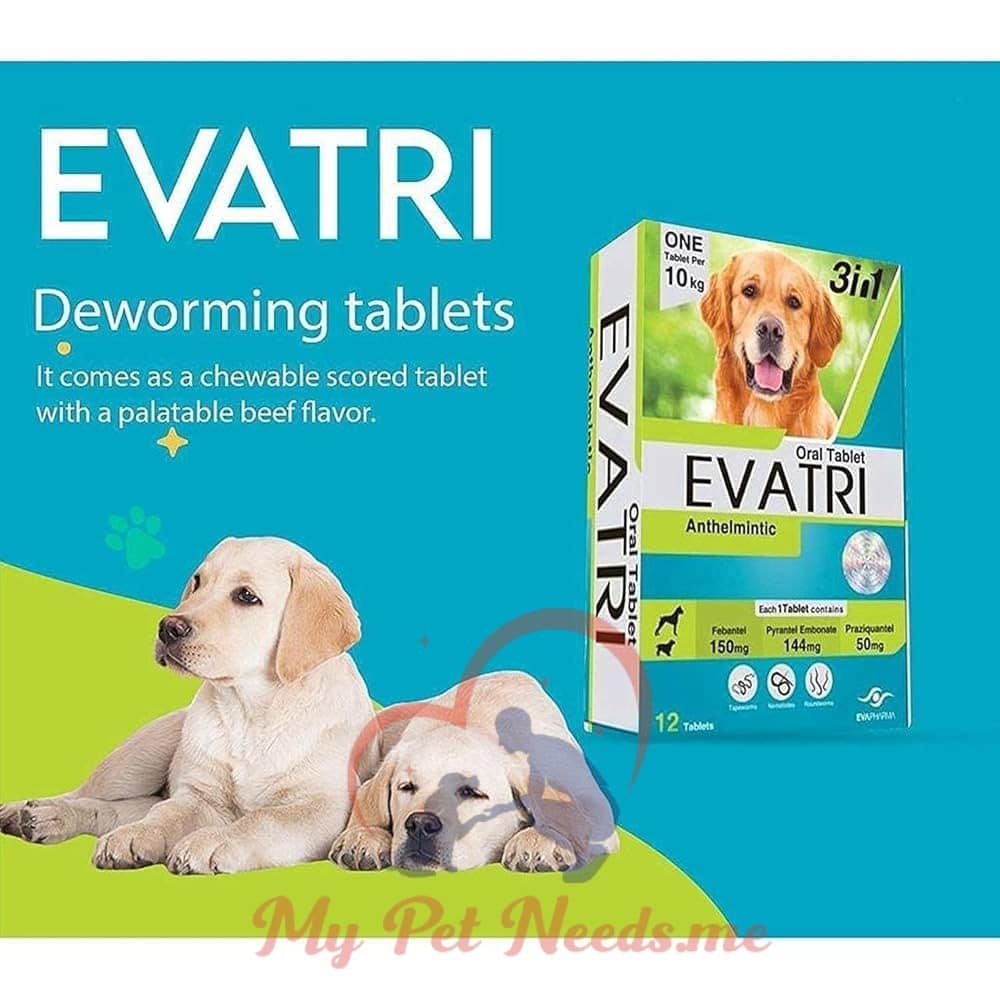 Available at My Pet Needs under the EVA Pharma brand. For dosing confirmation and parasite control plans, consult customer support or a veterinarian.